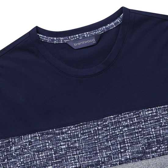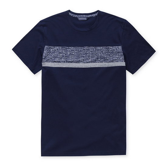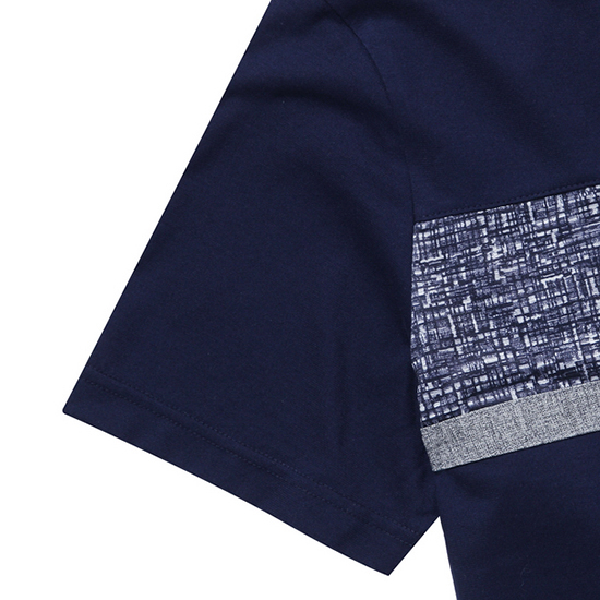 - 다른 조직감의 투톤 배색을 패치한 남성 티셔츠.