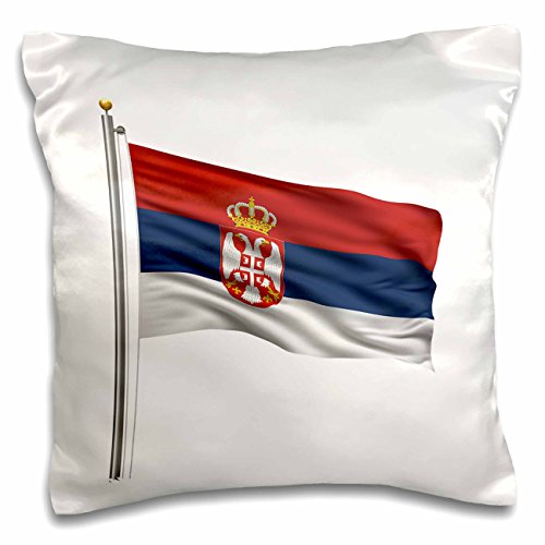 3dRose Flag of Serbia on a flag pole over white Serbian - Pillow Case, 16 by 16-inch (pc_157262_1)