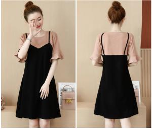 セットコーデ フレア袖 キャミワンピース フレアスカート 半袖 プチプラ 大人カジュアル シンプル 膝丈 膝上