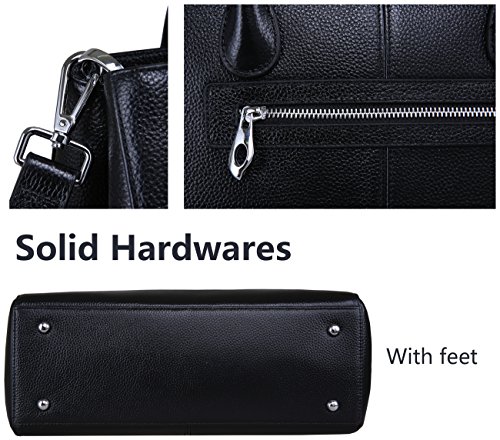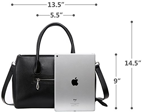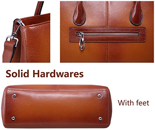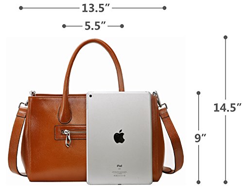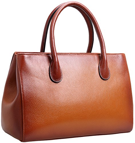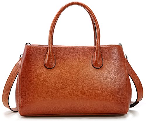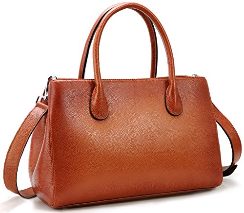 -. Feature : Sophisticated real leather handbag for ladies. The full grain surface endow it the special feeling. Such well designed purse will be easy to match most dressing and got tons of compliments. / Material: Top layer full grain leather, which comes form the first layer of cowhide. The lining is made of highly reflective polyester fabric, so you can find your stuffs inside without strle. / Structures: Outside there's a convenient side pocket, which can be used for holding keys and change. Inside the bag, the pockets on the wall include 1 zipper pocket and 2 pouch for wallet and phone. The zipper divider enable you to keep things in it, as well as keep bag organized. / Dimension: (L) 13.19 x (H) 9.05 x (W) 4.72 inches. Neat Weight: 2.26 lbs. Height of handle strap: 5.5 inches. Height of shoulder strap when hanged on shoulder: 20.9-23.6 inches. / Please allow little color difference due to the monitor and light brightness. Sometimes there may be slight smell that comes from packing and shipping, but it will fade away after a few days airing out.