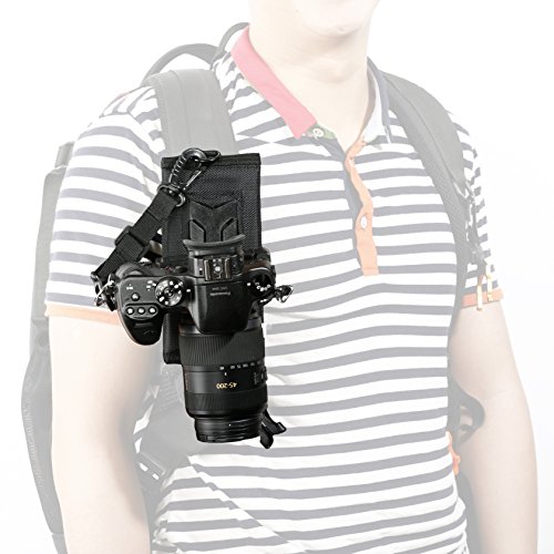 The locking system is secure and designed to hold up to lengthy use, with quick and easy release when required. Backup camera safety strap provide an extra line of protection against accidents, hold cameras securely against your body to eliminate tiring swing. Other systems use neck or shoulder straps which can induce more strain, this system keeps you more comfortable for longer and your equipment safe and accessible.