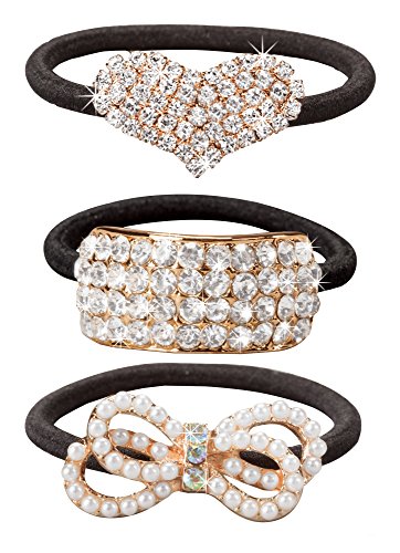 Sparkle Ponytail- Stretch Elastic Rhinestone Hair Tie Ponytail Holder, Set of 3