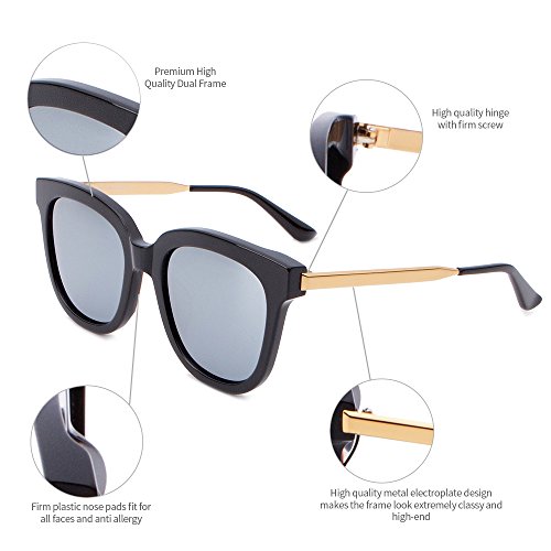Celaine Polarized Sunglasses, Retro Oversize Lens Metal Frame Women's Sunglasses UV400 Protection