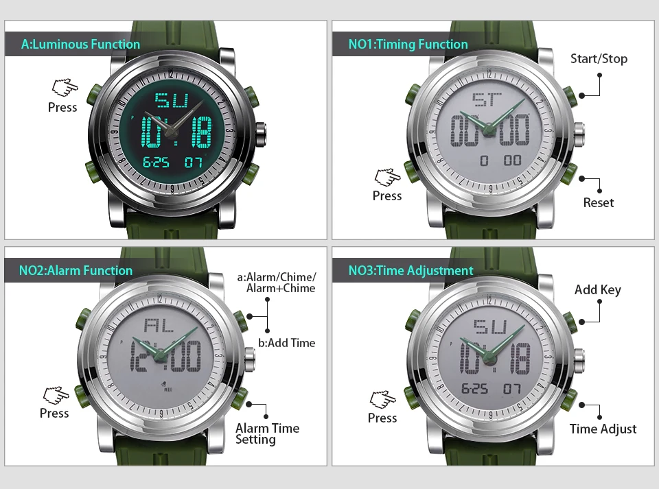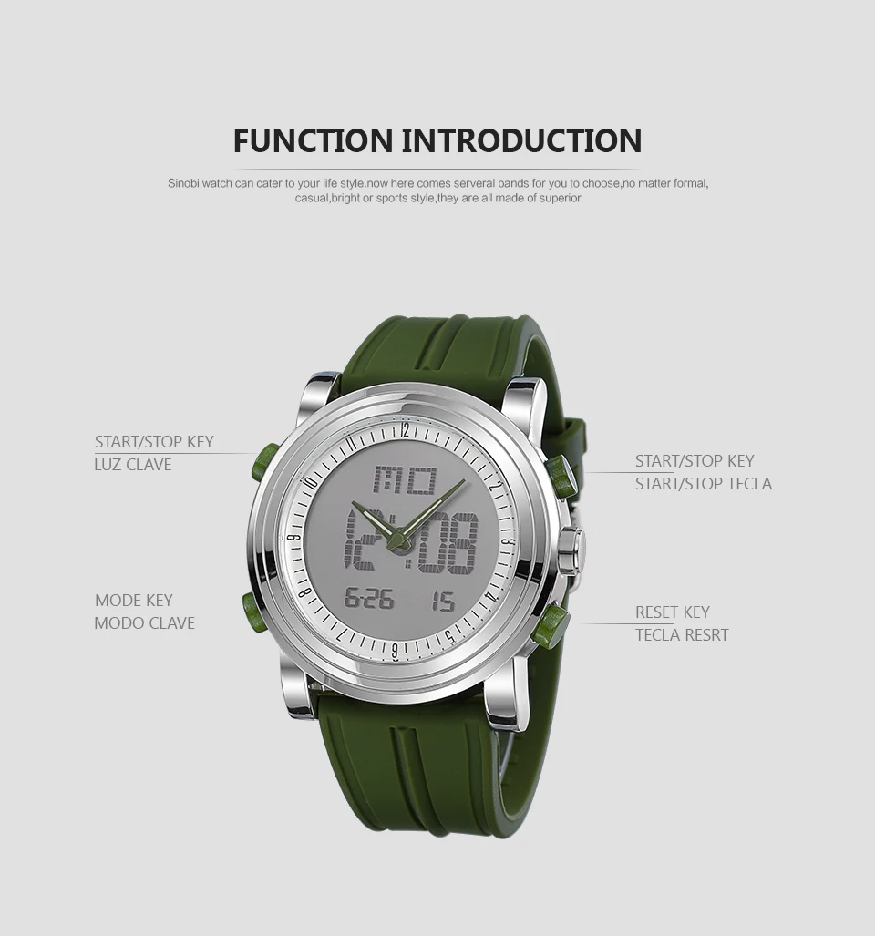 Feature:Water Resistant,LED display,Auto Date,Complete Calendar,Shock Resistant,Alarm