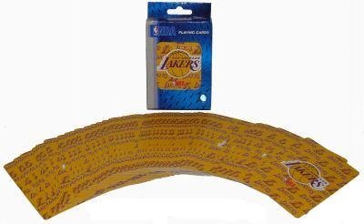 Officially licensed NBA merchandise. This is a full deck of playing cards with the Los Angeles Lakers' official logo on the front! Plastic coated playing cards. Team logo design on back of cards! Standard deck 52 cards and 2 jokers, standard size. Would be a nice additon to your poker game.