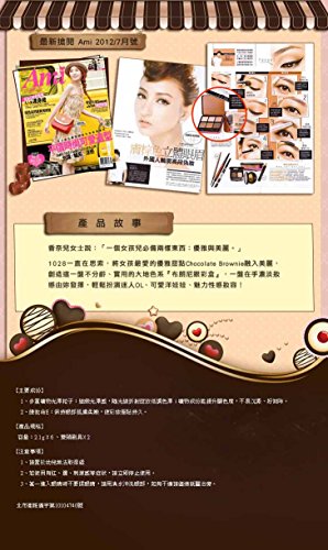 -. Binding : Misc. -. Brand : Unknown -. EAN : 4895195069392 -. Feature : Chocolate fading colours / Inspiration from delicious chocolate Brownies into six kind of shades / Especially made to suit Asian's skin tone / From lighter-coloured primer and stacked in to dark-rub to create a 3D eye shape -. Label : 1028 -. Manufacturer : 1028 -. PackageQuantity : 1 -. ProductGroup : Beauty -. ProductTypeName : BEAUTY -. Publisher : 1028 -. Studio : 1028 -. Title : 1028 Brownie Eyeshadow Palettes 2.1g