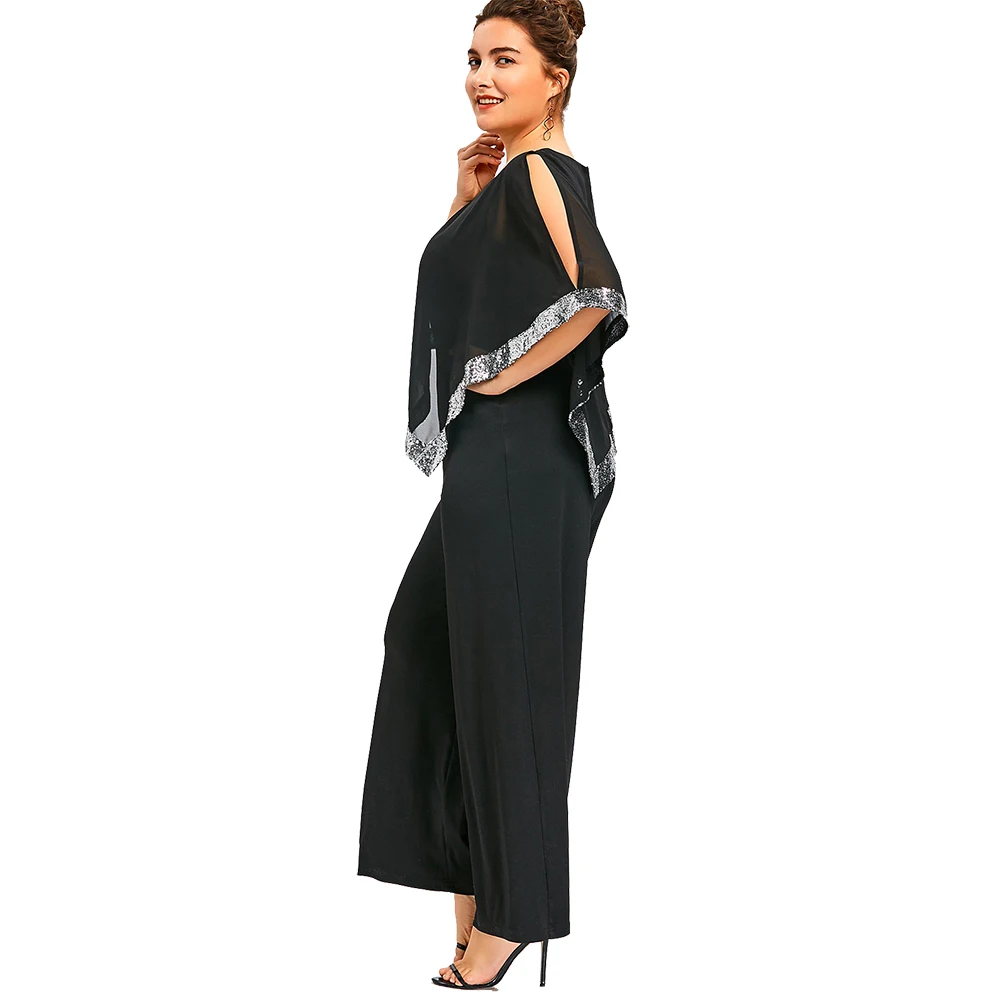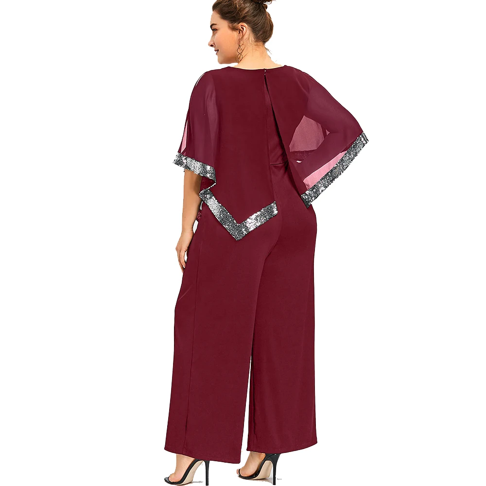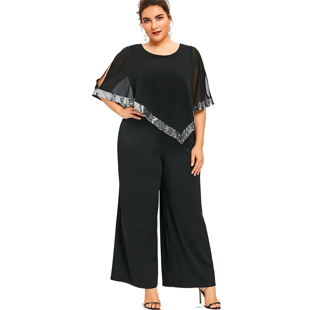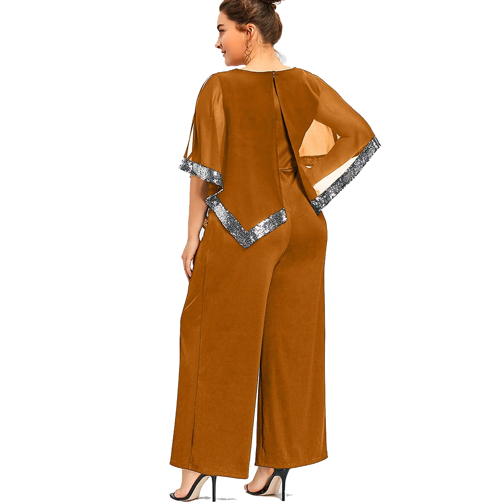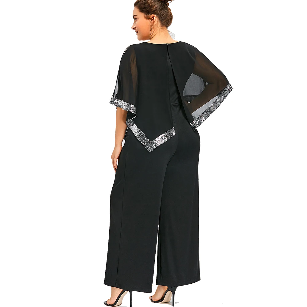 Model Number:Plus Size Sequined Overlay Wide Leg Jumpsuit