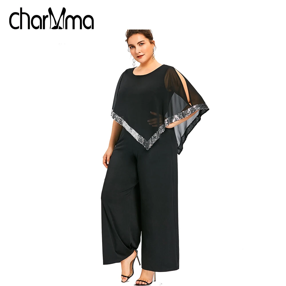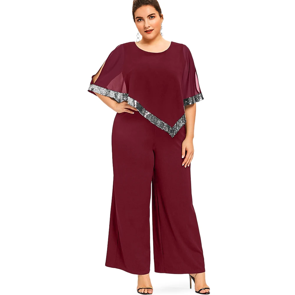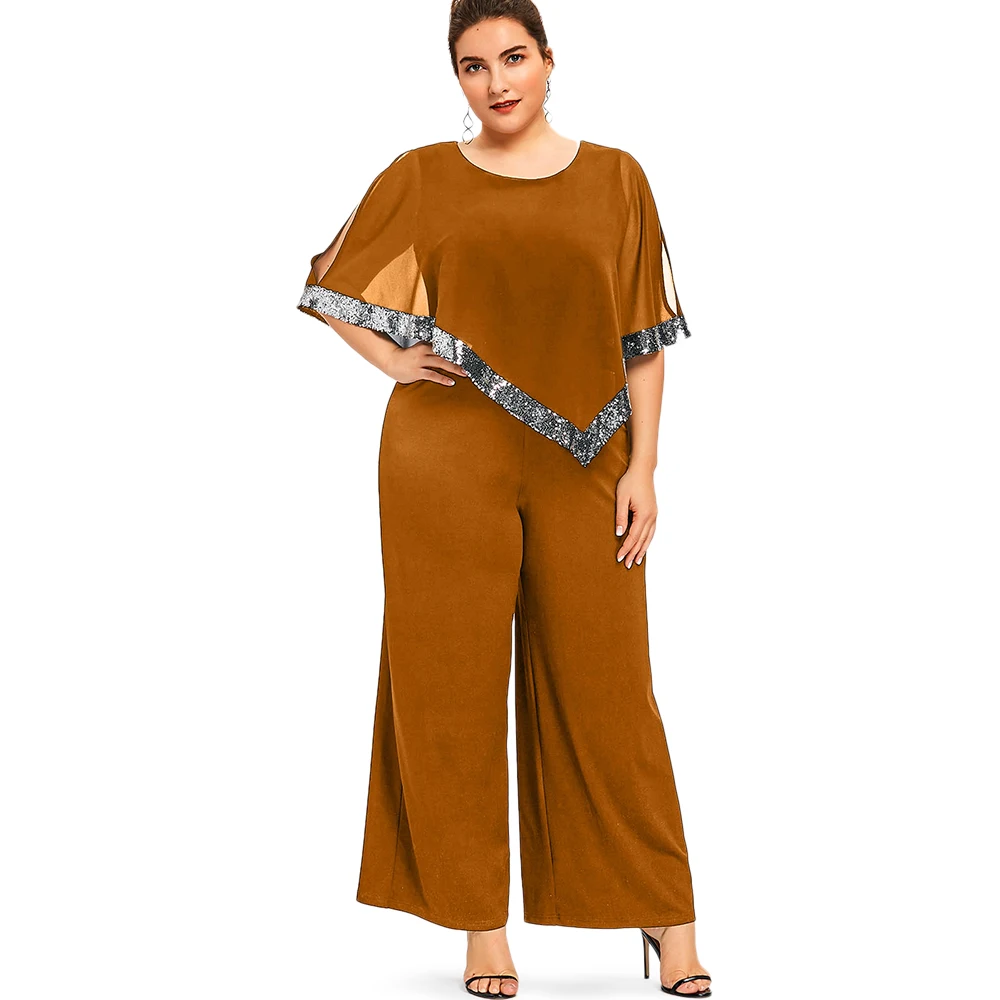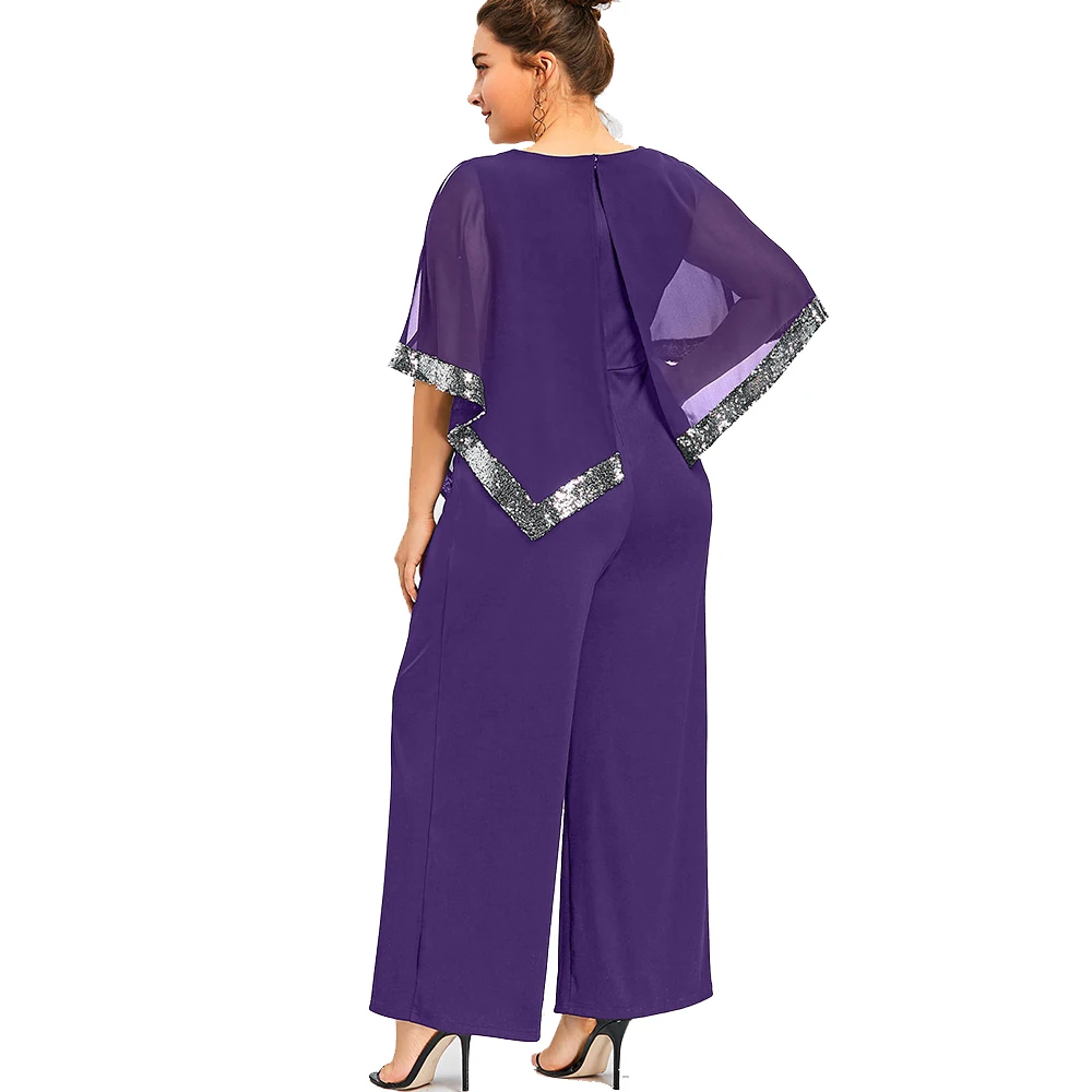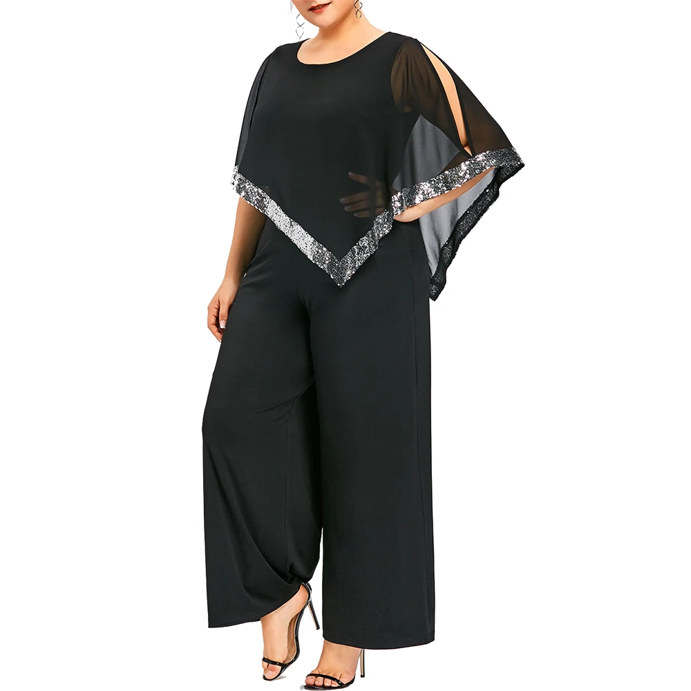 Model Number:Plus Size Sequined Overlay Wide Leg Jumpsuit