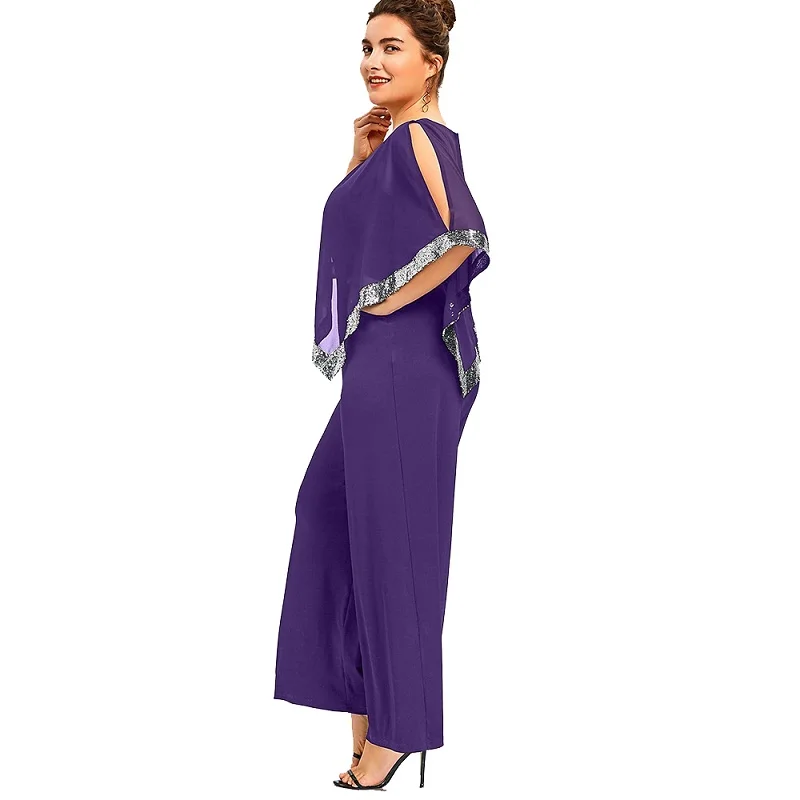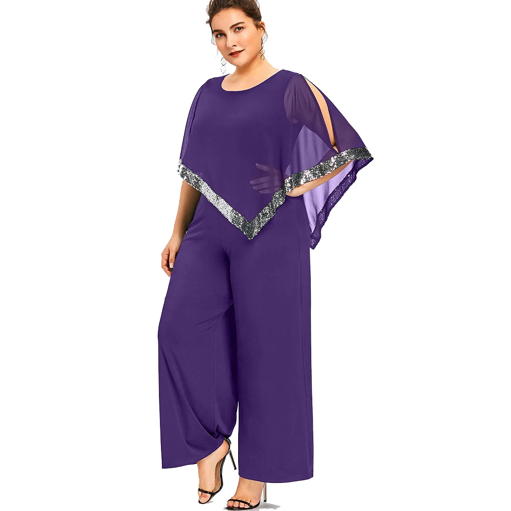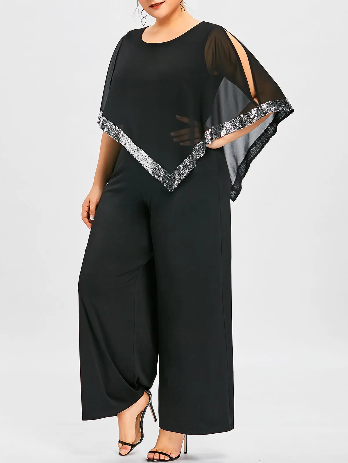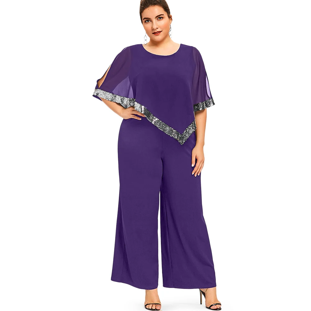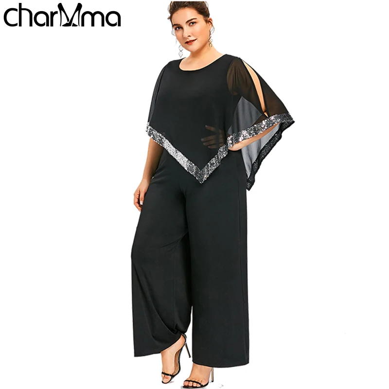 Model Number:Plus Size Sequined Overlay Wide Leg Jumpsuit