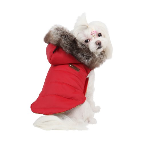 Winterweste mit abnehmbarer Kapuze mit Steppdecke Kapuze mit Faux Pelz Argyle Muster im Innenfutter Brand : Puppia Item model num : PAND-VT1167-RD-M MPN(PartNumber) : PAND-VT1167-RD-M EAN : 8806166917679