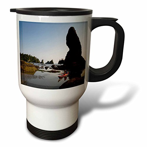 3dRose tm_190398_1 USA, Washington, Man Paddling Sea Kayak in Intertidal, Point of Arches Travel Mug, 14 oz, White