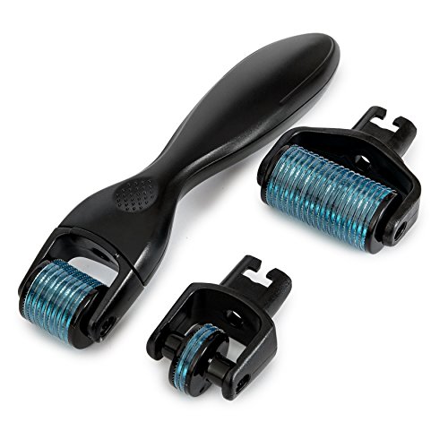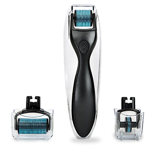 ⚫ SAVE MONEY - our 3 in 1 derma roller kit comes with 3 roller heads for use on different body parts all for the price of one single derma roller