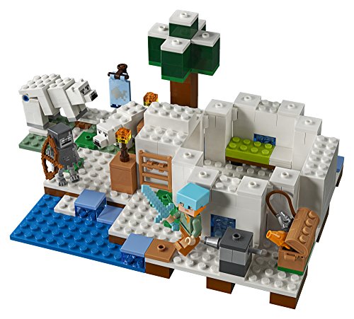 -. Feature : Includes an Alex LEGO Minecraft , plus stray, Polar bear and baby Polar bear figures / Features a buildable Minecraft igloo, set in a snow-covered landscape with a tree, plants and a water area with ice block elements, plus a decorative banner and an arrow dispenser / Accessory elements include a fishing rod, 2 fish, ladder and a chest / Set your imagination free-rebuild the set for more LEGO Minecraft creations / Measures over 4" (11cm) high, 6" (16cm) wide and 9" (24cm) deep
