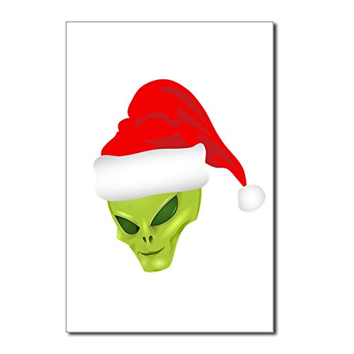 -. Title : Postcards (8 Pack) Green Alien Head with Christmas Santa Hat