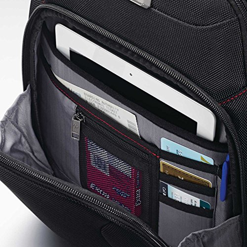 -. Binding : Apparel -. Brand : Samsonite -. Department : unisex -. Feature : Constructed of red 1680 denier ballistic polyester for durability / Tech locker is designed for your digital life. One zipper opening for provides accordion-style storage and organization for all your accessories and peripherals. / Tablet/iPad pockets / Air mesh padded shoulder straps and back with air channel system provides breathability / 6x12x16.5 -. Label : Samsonite Corporation -. Manufacturer : Samsonite Corporation -. PackageQuantity : 1 -. ProductGroup : Apparel -. ProductTypeName : BAG -. Publisher : Samsonite Corporation -. Studio : Samsonite Corporation -. Title : Samsonite Xenon 3.0 Slim Backpack Business Backpack