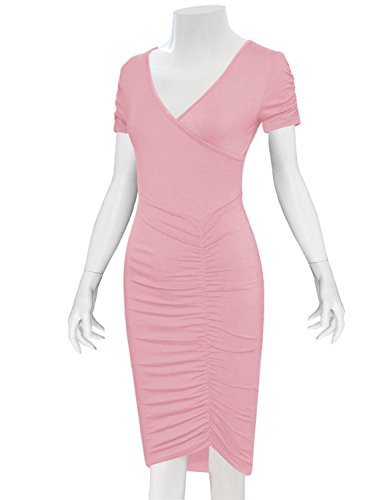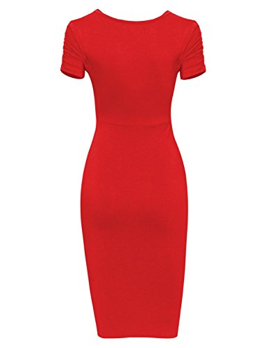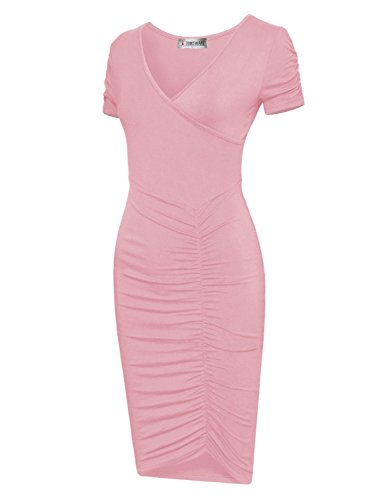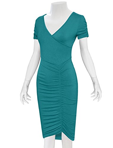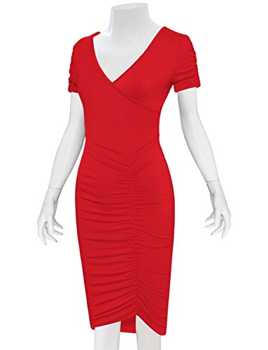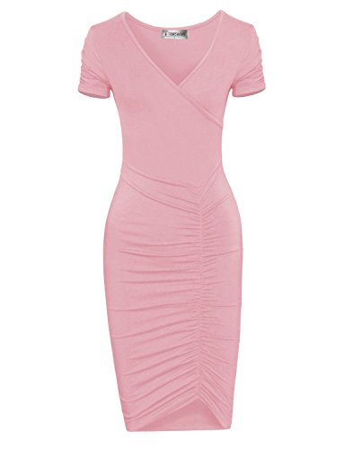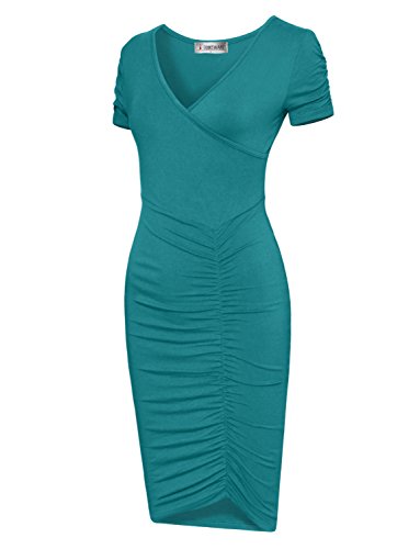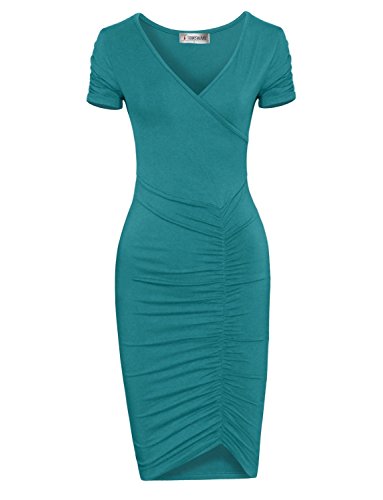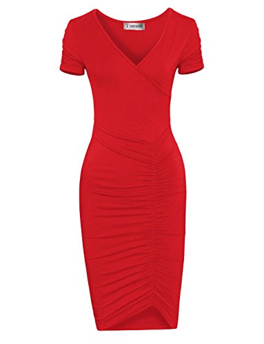 A timeless piece from Tom's Ware features V-neckline, knee length, pull on, ruched short sleeve and flattering front ruched design that will accentuate your body in all the right place. This pull on Dress will give your wardrobe a chic upgrade. The stretchable materials which can show off your sexy curves. This dress from Tom's Ware is just what you've been searching for. It can be worn for either casual or formal occasion and a must have for your closet collection. Material: 65% Poly 35% Rayon stretch, soft and high quality This is our size chart for your reference:Inches(Cms) US Small---Chest:26-28"(74cms) ---Shoulder:13.39"(34cms) -- Length:38.58"(98cms) -- Sleeve:5.51"(14cms) US Medium---Chest:29-32"(80cms) -- Shoulder:14.17"(36cms)--Length:38.58"(98cms)-- Sleeve:5.91"(15cms) US LARGE --- Chest:33-35"(86cms) -- Shoulder:14.96"(38cms) -- Length:39.37"(100cms) -- Sleeve:6.30"(16cms) US XLARGE --- Chest:36-38"(92cms) -- Shoulder:15.75"(40cms) -- Length:40.16"(102cms) -- Sleeve:6.69"(17cms) US XXLARGE --- Chest:39-43"(98cms) -- Shoulder:16.54"(42cms) -- Length:40.94"(104cms) -- Sleeve:7.09"(18cms) And the model try this size: Height: 5'9" Bust: 32" Waist: 24" Hip: 33" Wear Size: US SMALL 0