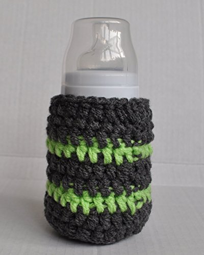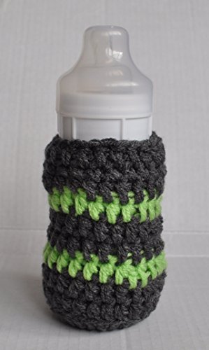 LARGE STRIPED BABY BOTTLE INSULATOR FOR 240ML 260ML - GREY AND GREEN STRIPES