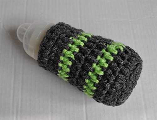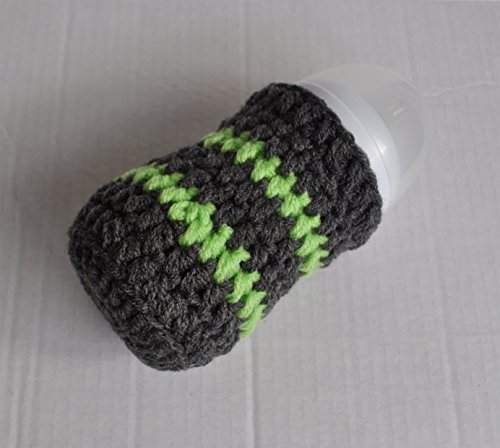 Handmade Crochet striped baby bottle cover, made for Avent Natural bottle. Also fits others of similar shape and size, such as Avent Classic 260ml, MAM 260ml and Dr Brown's Wide Neck 240ml. These bottle cosy will keep the milk insulated, they also have elastane fitted so it grips on to the bottle for a snug fit. This would make a great gift for a mother-to-be as a babyshower gift. Care Instructions: -Hand washable, machine washable at 40 degrees, lay flat to dry. 95% Acrylic 5% Elastane. Please note that the bottle is not included.