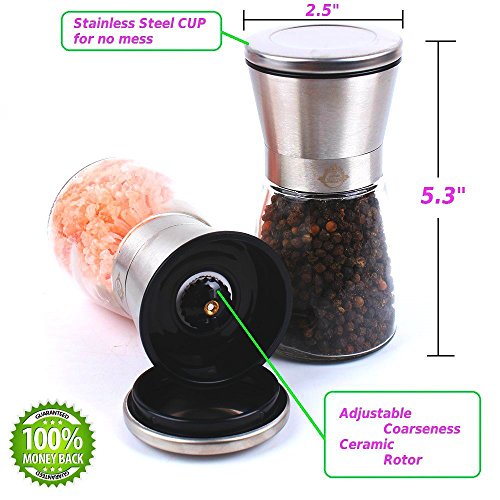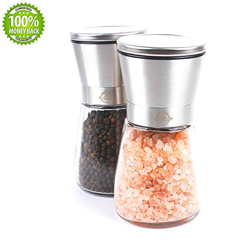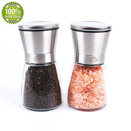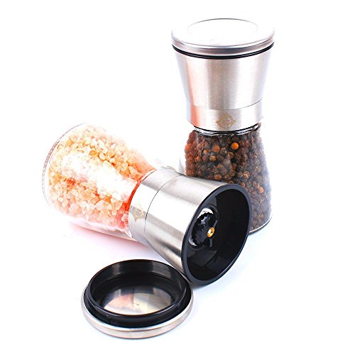 HIGH QUALITY GLASS AND STAINLESS STEEL SALT AND PEPPER GRINDER SET - salt and pepper mill set feature a modern design are stylish and elegant enough for kitchen