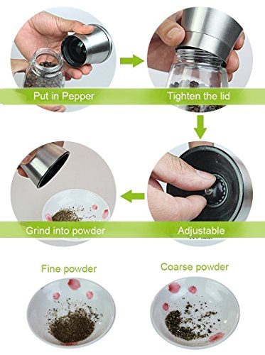 EXTEND FRESHNESS - The stainless steel cap which elegantly designed keeps your spices fresh for long time. Unlike other shakers you can grind your spices with closed cap and ensuring spices ends up only on your food by uncovering the cap after grinding.