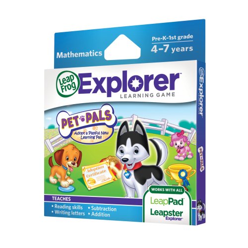 -. Binding : Toy -. Brand : LeapFrog Enterprises -. EAN : 0708431390706 -. Feature : Solve addition and subtraction problems in the Fetch-and-Fling competition / Follow the words as you walk your dog to earn money for goodies / Adopt a playful new learning pal and follow directions to take care of him / Teaches reading skills, writing letters, subtraction and addition; Appropriate for children ages 4 to 7 years (grades pre-K to 1) / Works with LeapPad learning tablets and Leapster Explorer game systems (sold separately); Does not work with Leapster or Leapster 2 game systems -. IsAdultProduct : 0 -. ItemPartNumber : 39070 -. Label : Leapfrog -. LegalDisclaimer : Cartridge only. -. Manufacturer : Leapfrog -. Model : 39070 -. MPN : 80-39070E -. PackageQuantity : 1 -. PartNumber : 80-39070E -. ProductGroup : Toy -. ProductTypeName : TOYS_AND_GAMES -. Publisher : Leapfrog -. SKU : C9C4B51D -. Studio : Leapfrog -. Title : LeapFrog Explorer Pet Pals Learning Game (works with LeapPad Tablets, Leapster GS and Leapster Explorer)) -. UPC : 708431390706 -. Warranty : 90 day warranty against manufacturer defects