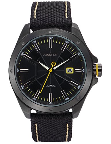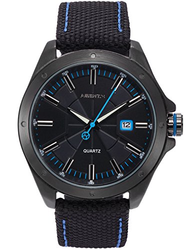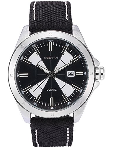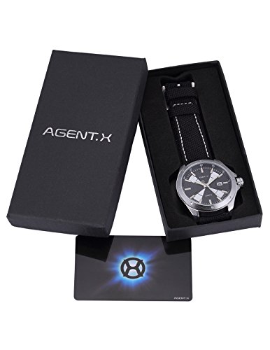 [에이전트 X]Agent X 손목시계 날짜 표시 쿼츠 나일론 밴드 블랙 맨즈