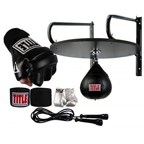 Studio : TITLE Boxing Publisher : TITLE Boxing Binding : Misc. Product Description The Complete Speed Bag Training Set is everything you need to increase speed and reflexes, plus build stamina and hand-to-eye coordination at a huge savings. The fully adjustable speed bag platform is engineered for flawless and blazing workouts, pro-style speed bag swivel, speed bag, leather speed bag gloves, semi-elastic 108" length hand wraps, full length licorice speed rope and a pair of flash mini boxing gloves to display. Save more than $25 on the complete set! Additional Shipping May Apply. 0