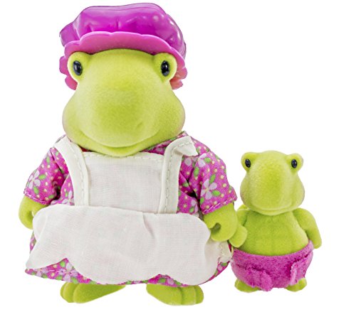 Add the Lil Woodzeez Tidyshine Turtles to your Honeysuckle Hollow community for some fun and adventure.;This family specializes in keeping the dishes clean!;Each animal is poseable, with jointed arms, legs, and heads that turn.;A set of 2 characters: mother Sally and baby Bubbles.;Characters are soft to touch and small enough to carry anywhere.