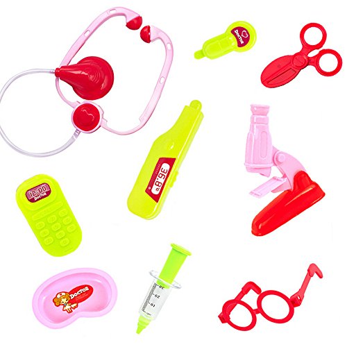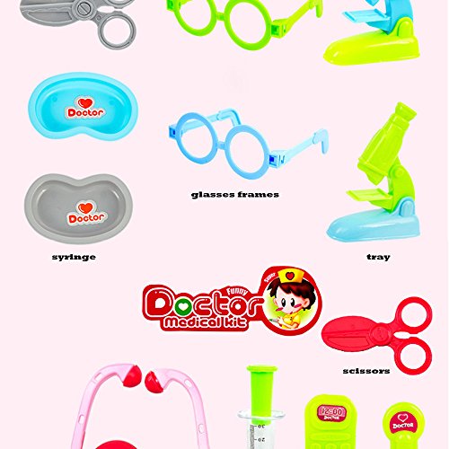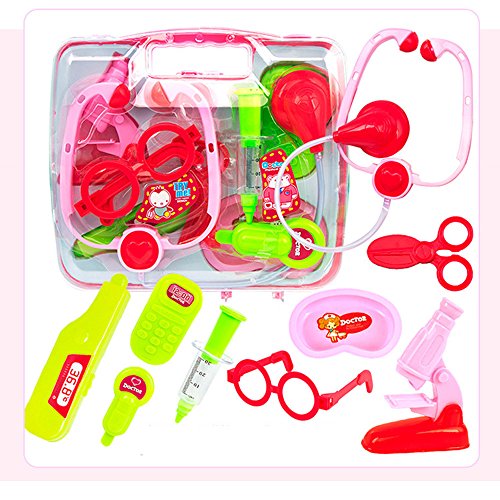 Features: Babies generally 18 months or older are beginning to be very fascinated with role-playing games. Character games, by doing what someone does, say someone's words pretend to be that person, are another way for children to characterize their experience. Through character games, young children are able to participate in the lives of adults in hypothetical situations, enabling them to experience and recognize the adult world. Usually boys and girls need a set of kitchen utensils, tools and doctor tools. Provide children with very good quality role-playing props, so that the baby himself to experience a doctor and nurse to do, indirectly also overcome the baby afraid of injection emotions. Specifications: Make a role playing for the kids with this doctors set and carry case! Help the kids to know more about doctor and some medical knowledge. Made of high quality material, it is safe to play with. Type: Simulation Medical Toolbox Toy Recommended Age: Above 3 Years Old Features: Pretended Doctor/Nurse Role Play Toy, Safe, Durable Product Name:Play house children's health care boxes, doctors tools toys, medicine boxes Adapt to age more than 18 months Main material:green plastic Product Unit:1 set Product packaging:boxed Packing Size:15 * 10 * 6cm Weight:310g Package Includes: 1 * carry box 1 * Stethoscope 1 * water meter 1 * glasses frame 1 * scissors 1 * thermometer 1 * tray 1 * syringe 1 * phone 1 * Microscope 0