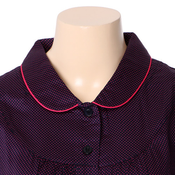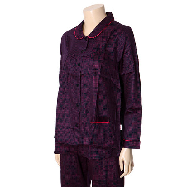 80수 여성 장팔 파자마입니다. 80수 면으로 촉감이 부드러우며 퍼플컬러의 핑크컬러의도트무늬가 있어 귀여움을 줍니다. 소매와카라,주머니에 포인트를 주었습니다