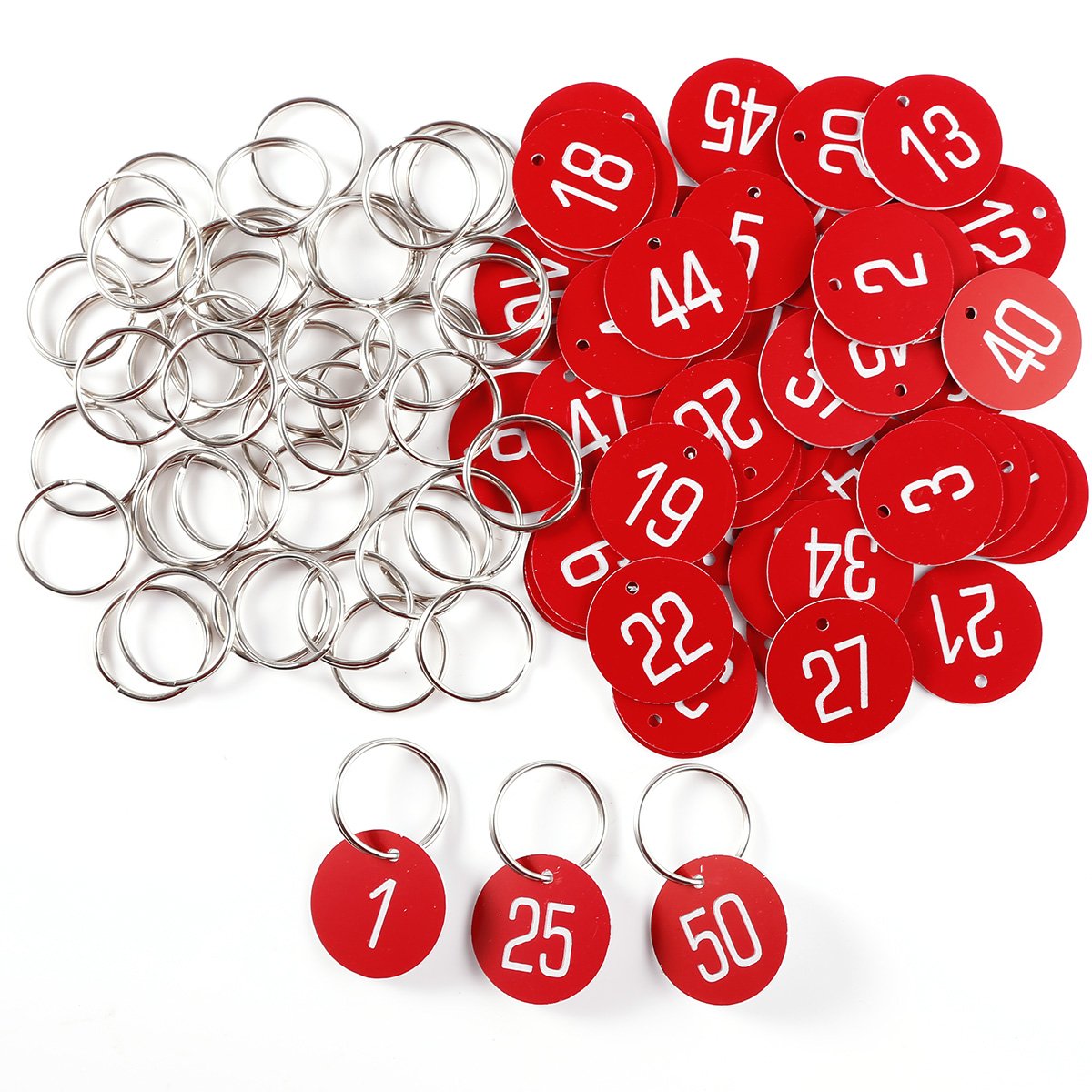 材質:プラスチック 寸法:3x0.2CM 【内容】50枚セット 1~50番 リック付き 用途:家、オフィス、ホテル、レンタル管理会社、宿泊施設、保管施設など