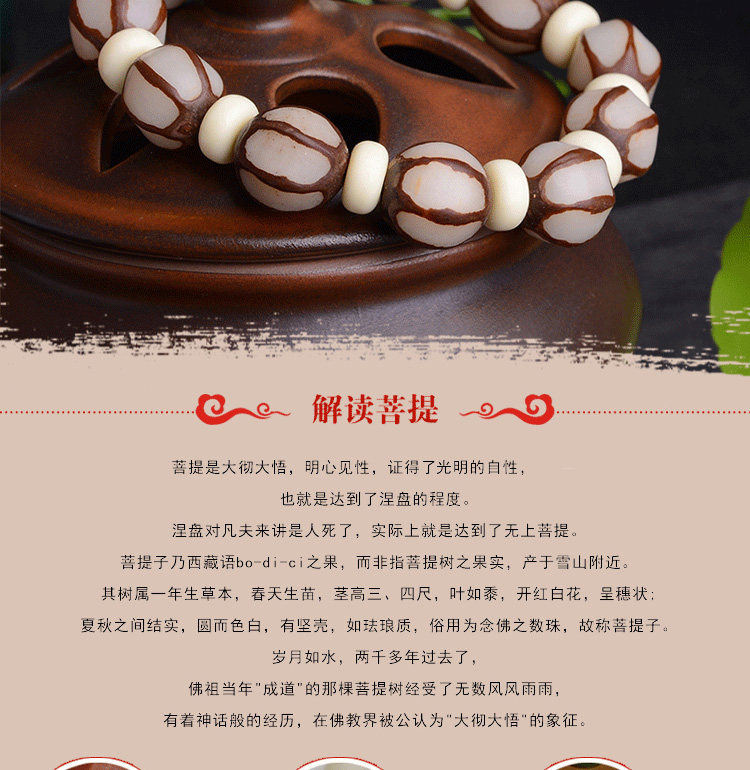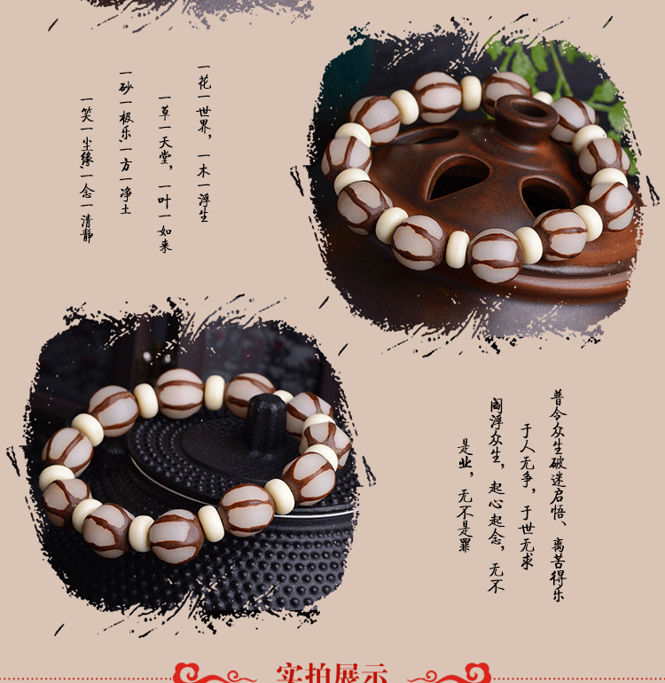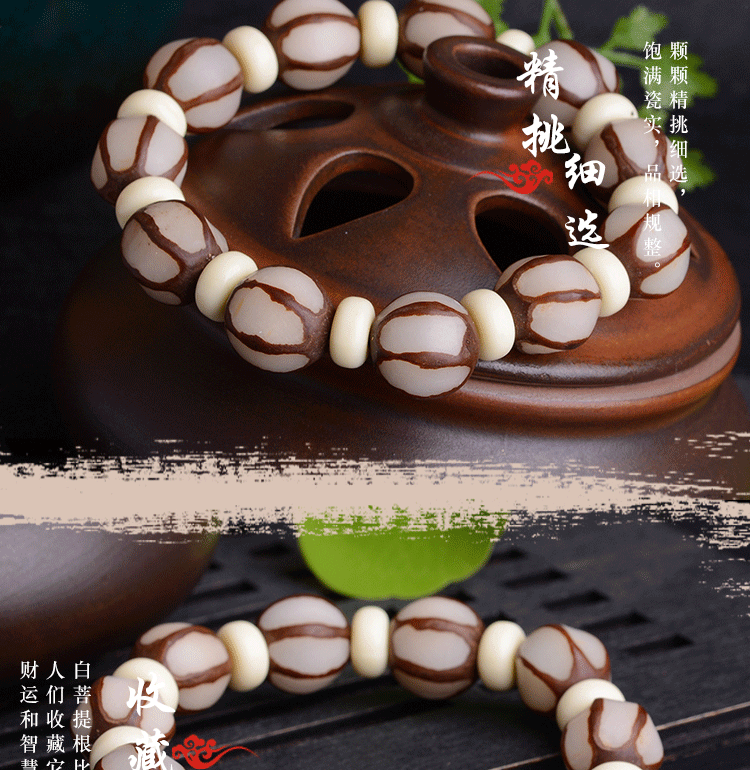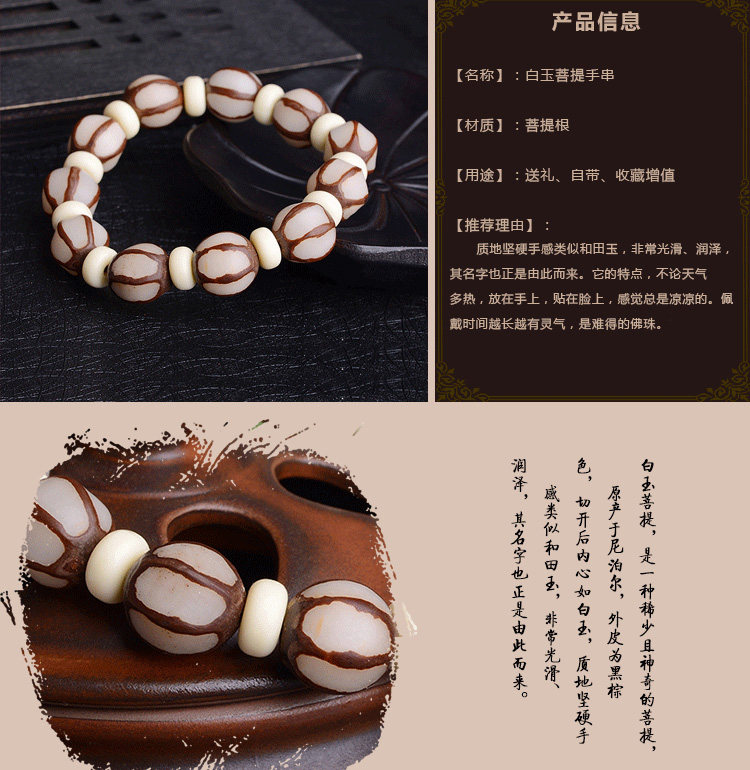 天然白玉菩提根圆珠手串菩提子佛珠手链单圈男女士念珠饰品
