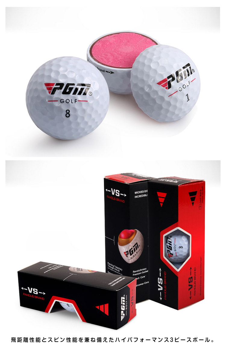 | より遠く、まっすぐに!驚異的な飛距離性能!飛距離性能とスピン性能を兼ね備えたハイパフォーマンス3ピースボール。 | |