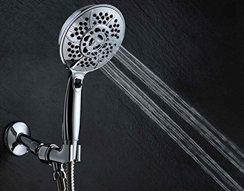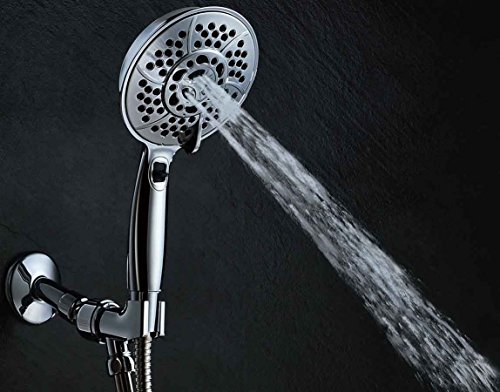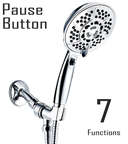 PREMIUM QUALITY AND 7 SPRAY SETTINGS: Wide Full Coverage and Anti-Leak modern Design. Lasting Finish Resists corrosion & wear. Can be used as Overhead or Handheld shower. Ergonomic Grip Handle. One finger control Multi-Power Dial. EcoSwitch Pause Button reduce water flow and save. 7 sprays: power spray, power massage, power spray+massage, Outer Spray, Inter spray, Water saving trickle( save water and keep your shower warm while you shave or shampoo) and On/Off Pause Button.