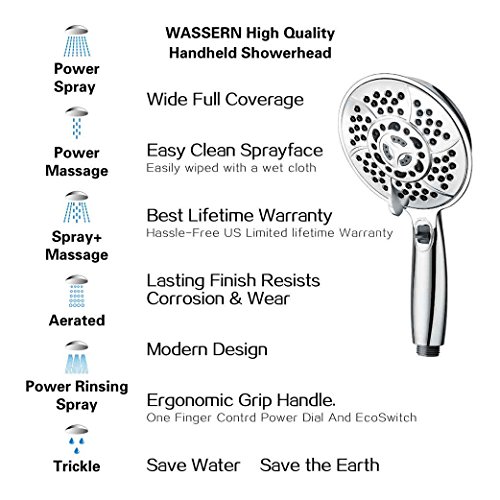 SAVING WATER SAVING MONEY: Saving $110/year or 35% water with our New Massage Spray, Ecoswitch Pause and water saving trickle dial.The Wassern Showerhead will pay for itself in less than 3 month. INSTALL in minutes on any standard shower arm. Easy Tool-Free connection.