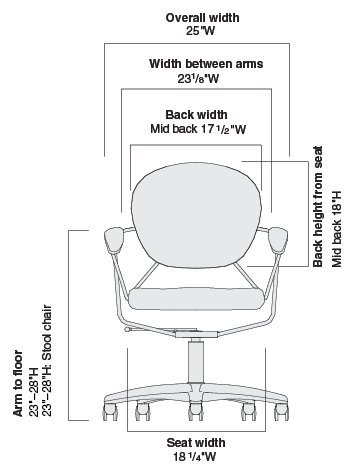 -. Feature : Colored Buzz2 fabric, black metal frame, and black plastic base / Mid-Back model only: 23d x 25w x 31/36h / Designer: Charles Perry