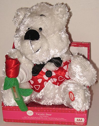 -. Binding : Toy -. Brand : Walmart -. EAN : 0086786418383 -. Feature : Plays "I Can't Get Enough of You Baby" / Rose Spins and Shows Lighted Messages - I LOVE YOU, YOURE THE GREATEST, HEARTS / Uses 4 - AA Batteries (included) -. IsAdultProduct : 0 -. ItemPartNumber : 05314 -. Label : Walmart -. Manufacturer : Walmart -. MPN : 05314 -. PackageQuantity : 1 -. PartNumber : 05314 -. ProductGroup : Toy -. ProductTypeName : TOYS_AND_GAMES -. Publisher : Walmart -. Studio : Walmart -. Title : Fanatic Bear Plays I Can't Get Enough of You Baby with Spinning Rose that Displays Lighted Messages Valentines Gift -. UPC : 086786418383