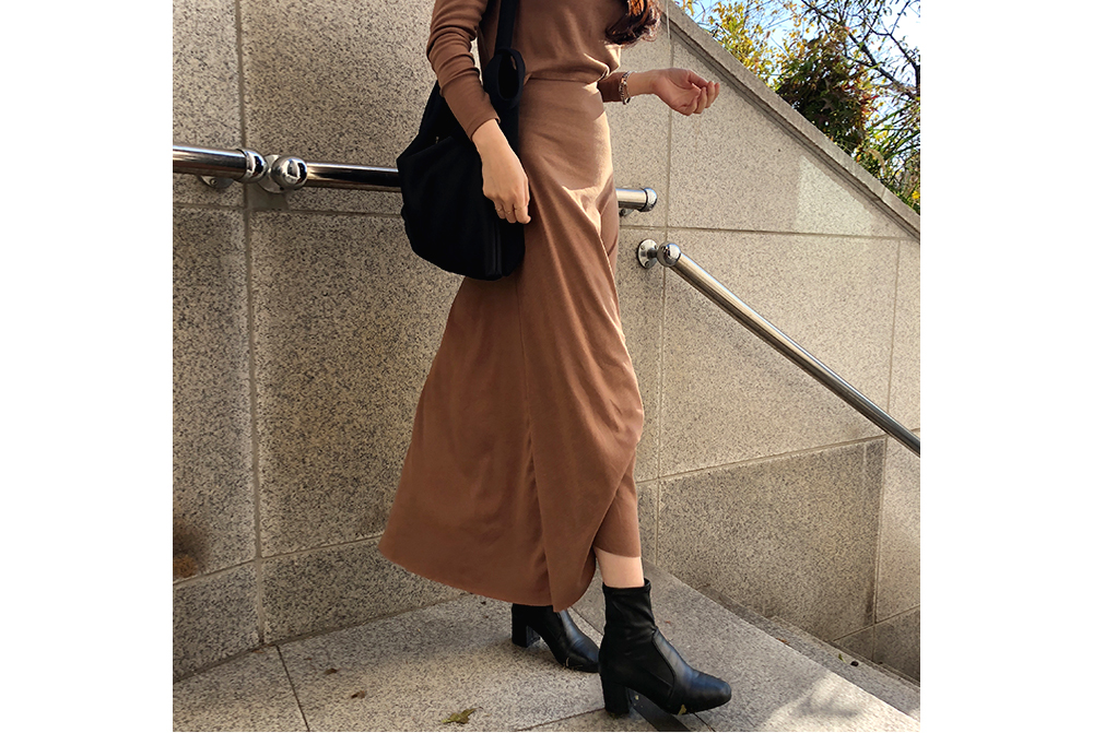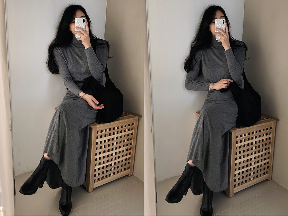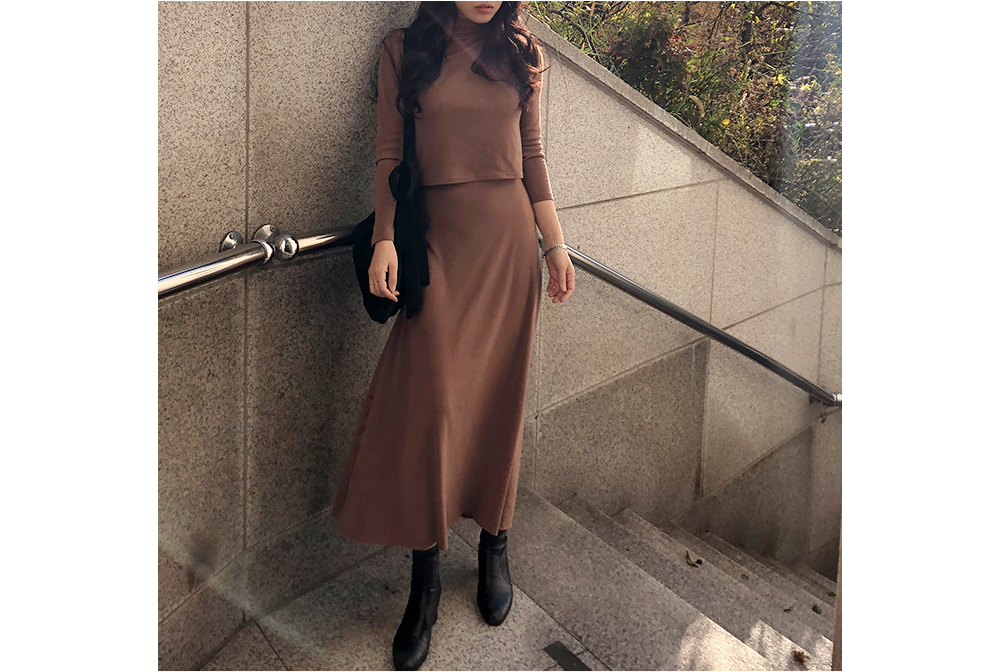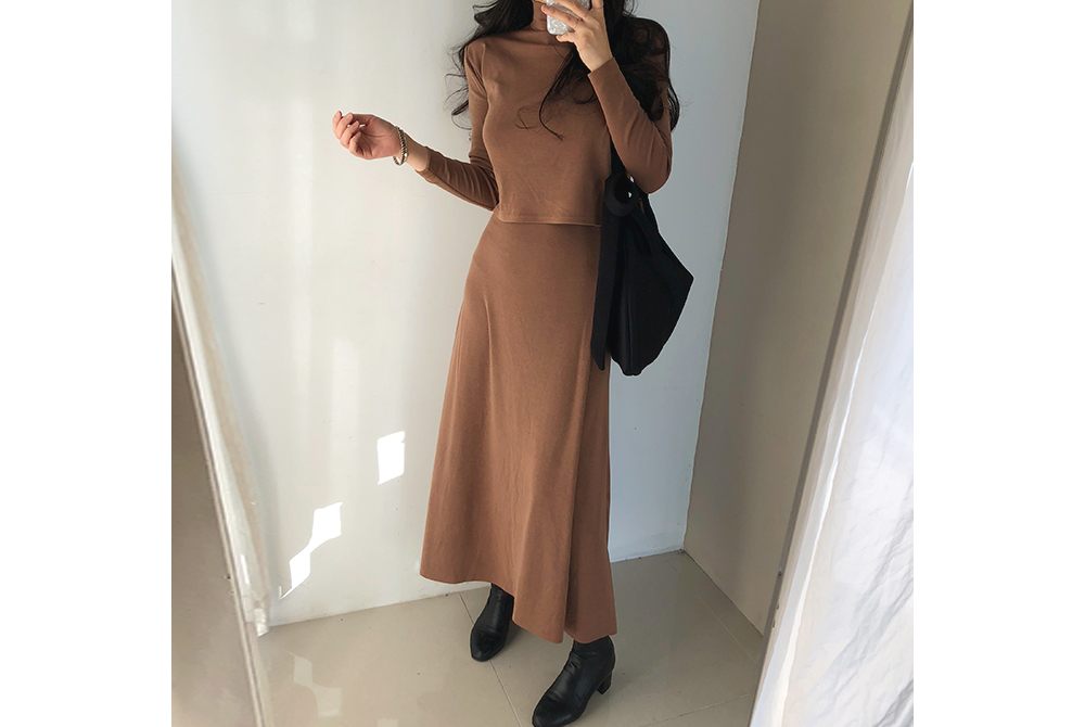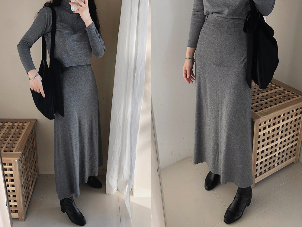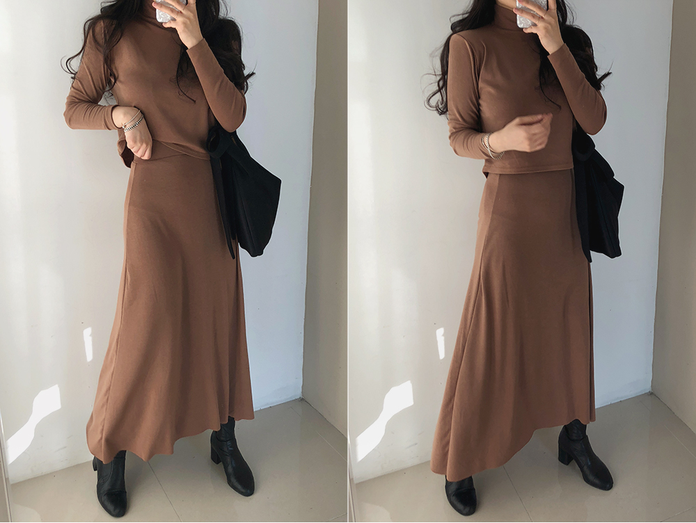 기모 슬림 반폴라 스커트 투피스 세트