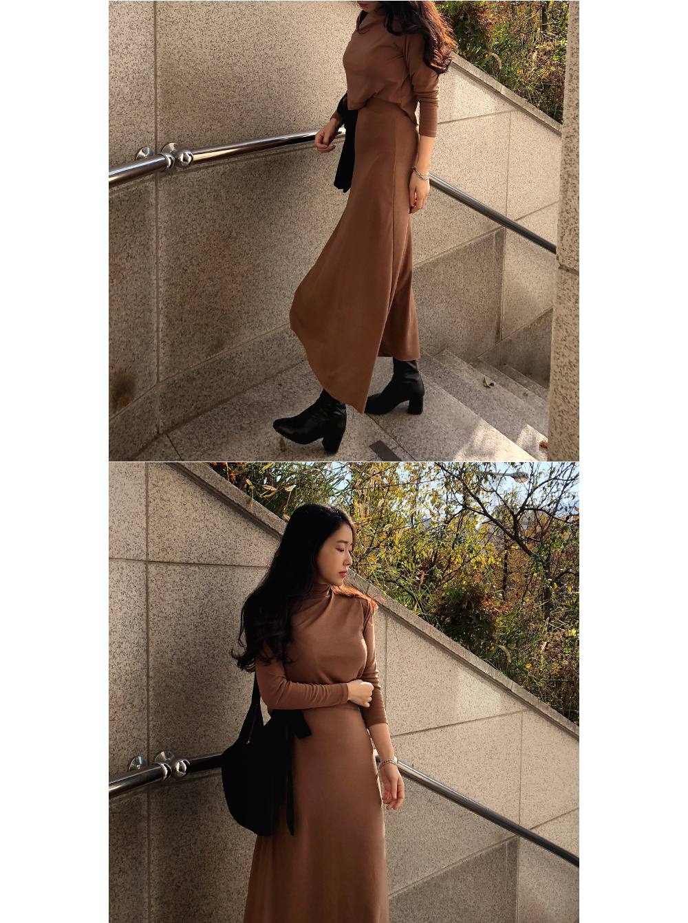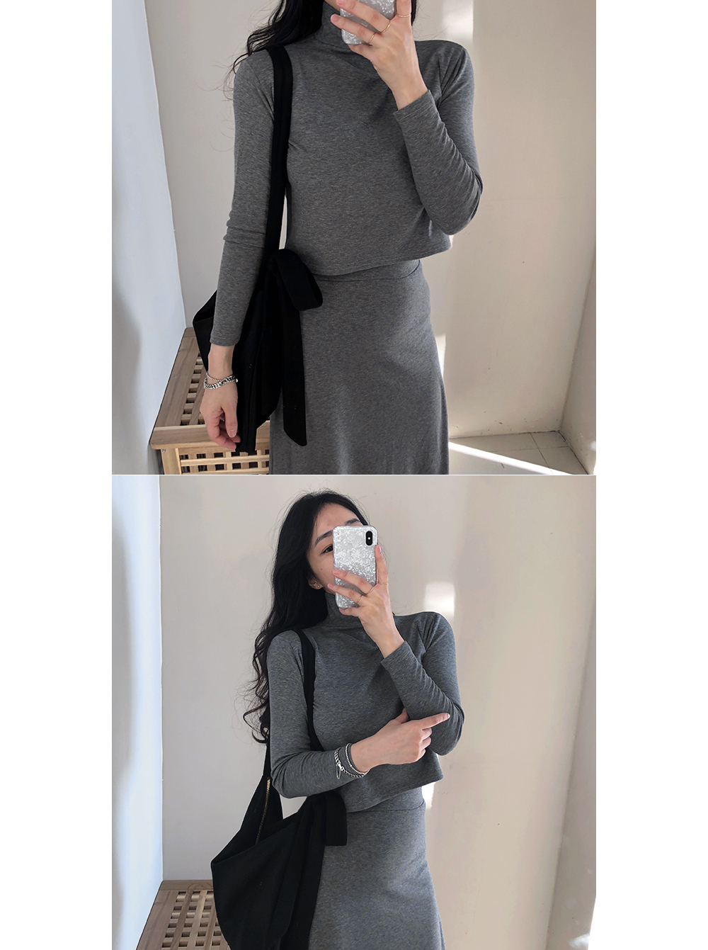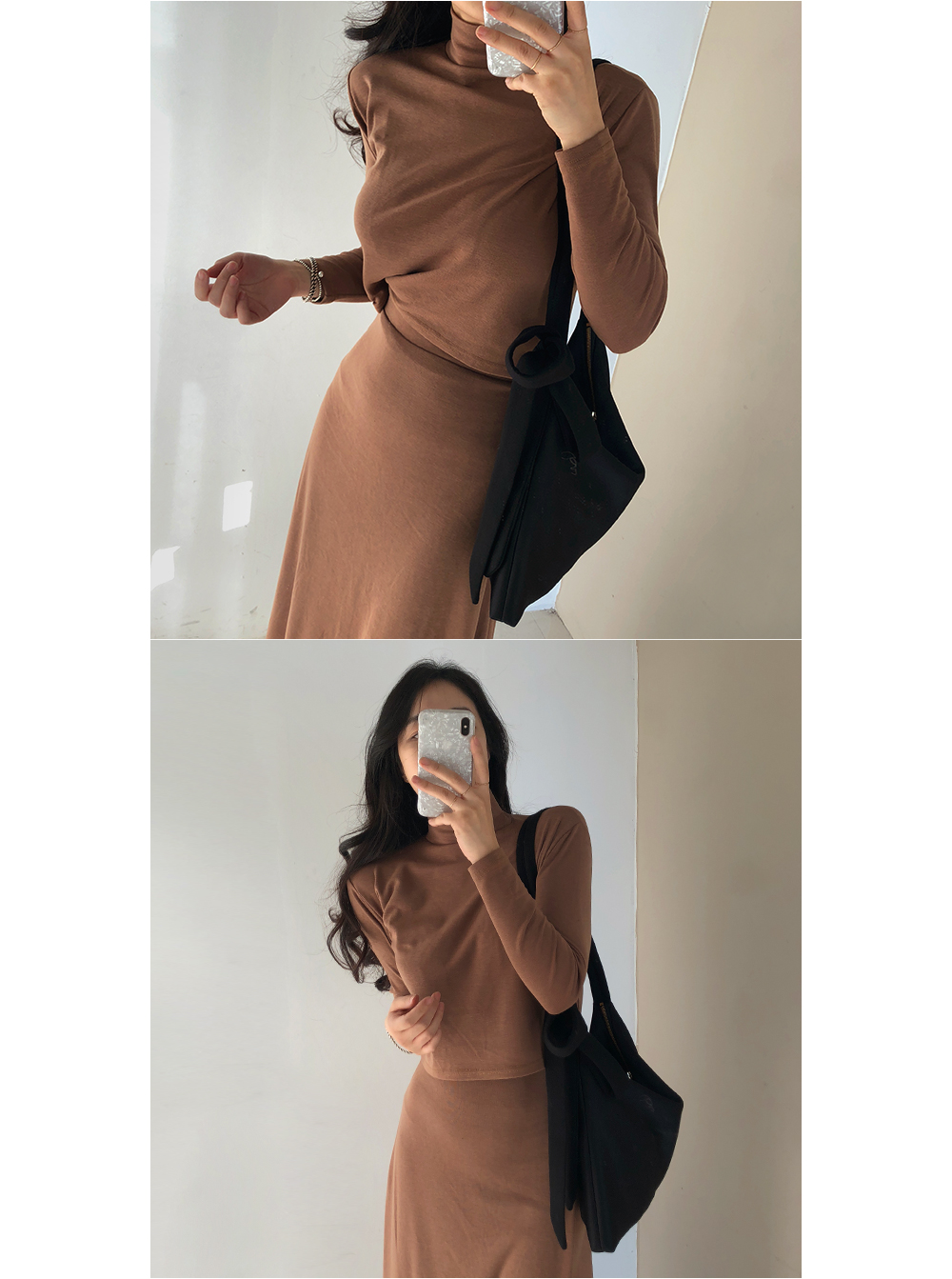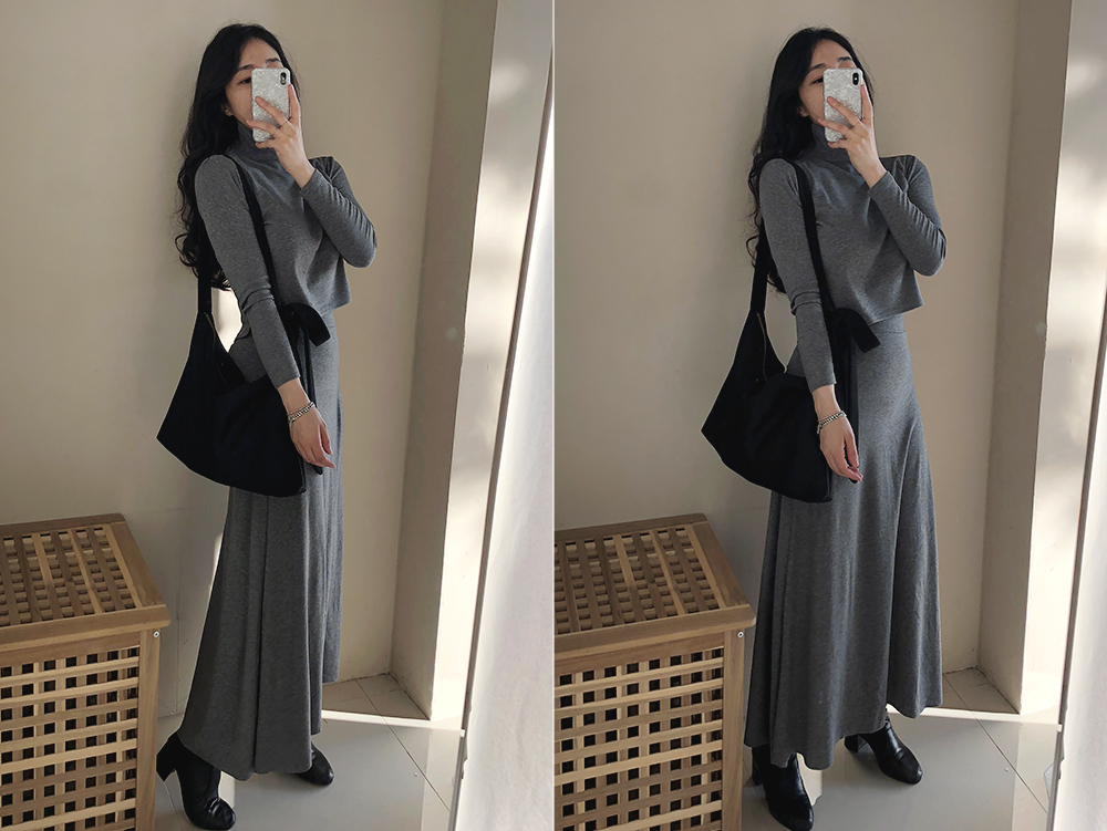 기모 슬림 반폴라 스커트 투피스 세트