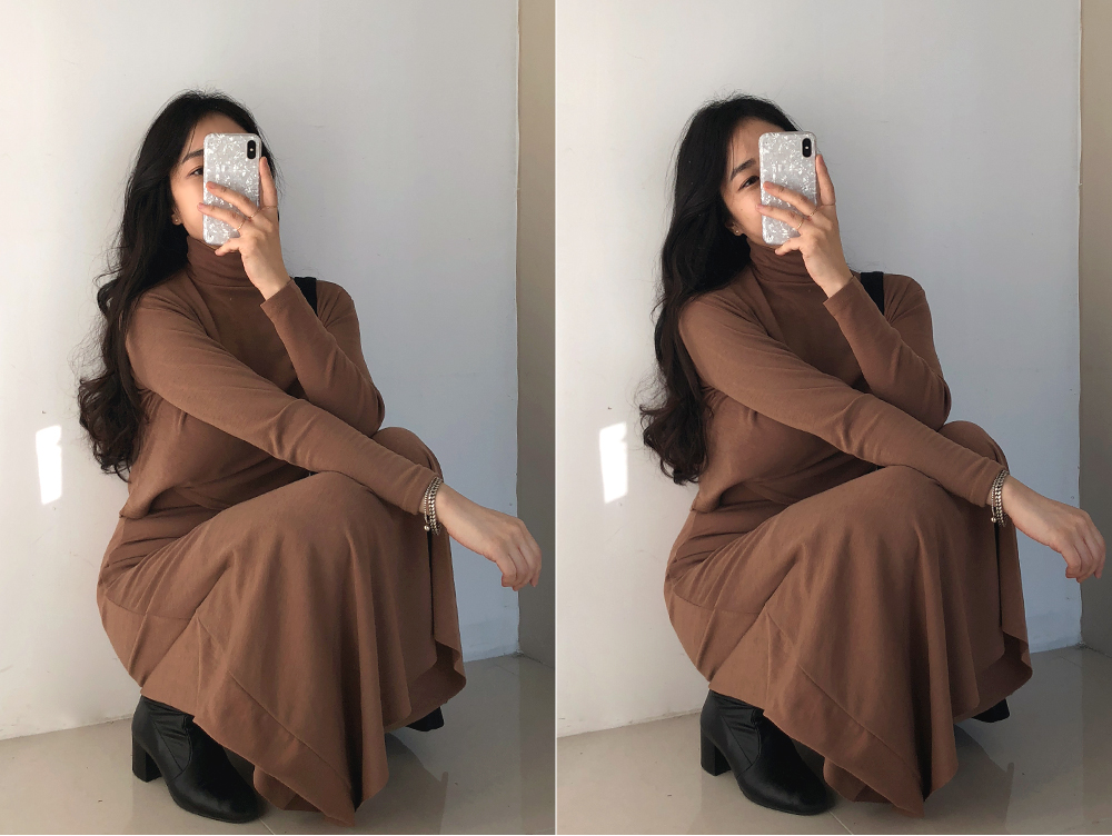 목을 감싸주며 밑단 앞,뒤 기장이 달라