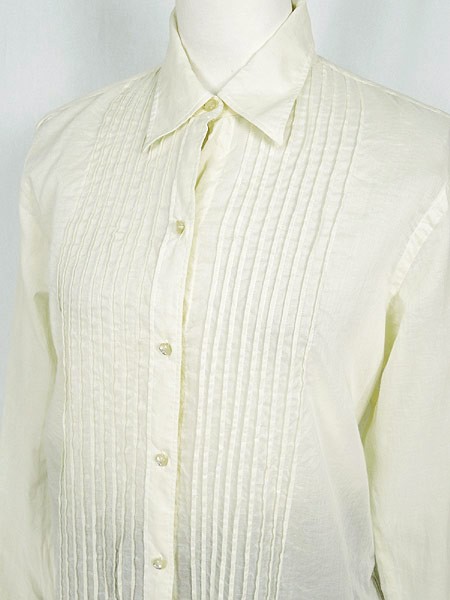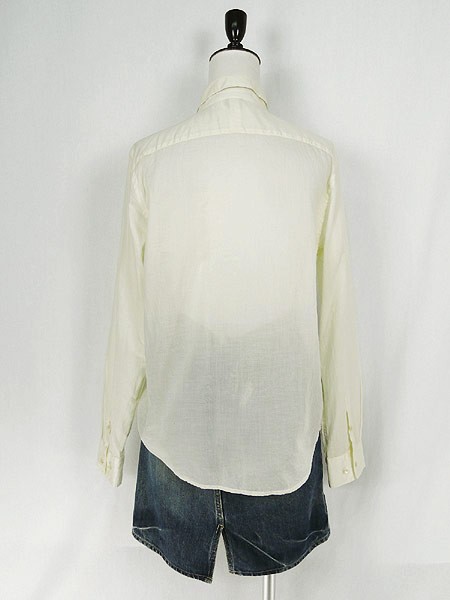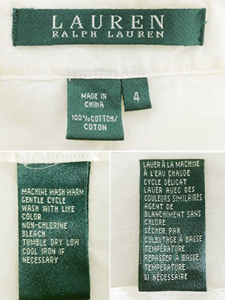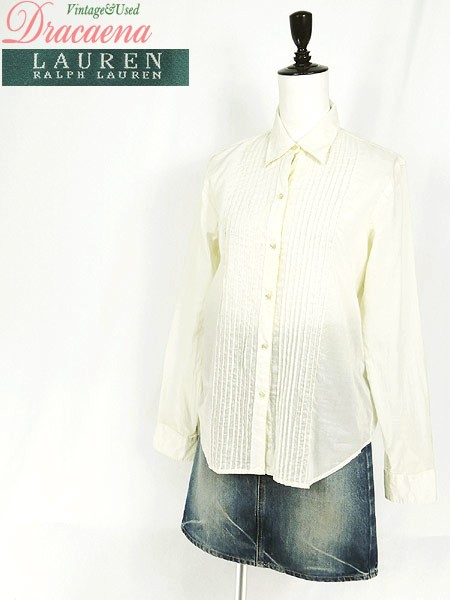 Ladies ブランドLAUREN RalphLauren ローレン ラルフローレン カラーオフホワイト メール便可 コンディション★★★ 素材コットン 表記サイズ4 スタッフコメント透け感あり。 実寸サイズ 着丈 63 cm 身幅 47 cm 肩幅 37 cm 袖丈 60 cm ※ウエスト・ヒップ以外は平置き採寸