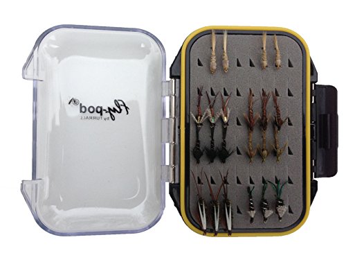 -. Binding : Sports -. Brand : Turrall -. Color : Nymphs/Black -. EAN : 0709276022494 -. Feature : This is a superb collection of un weighted and small Gold Bead and Tungsten Bead Nymphs. It includes all the proven trout catchers Pheasant Tails, Hare's Ears, Copper Johns and Tungsten Caddis. 22 flies in 11 patterns supplied in a Fly Pod. / Perfect pocket sized Fly Pod containing 22 flies all tied to Turrall's high standards. / Slotted foam inserts hold the flies and a snap-shut locks provides a water tight closure. Supplied in a Fly Pod measuring 100mm x 75mm x 30mm -. Label : Turrall -. Manufacturer : Turrall -. Model : FPOD33-US -. MPN : FPOD33-US -. PackageQuantity : 1 -. PartNumber : FPOD33-US -. ProductGroup : Sports -. ProductTypeName : SPORTING_GOODS -. Publisher : Turrall -. Size : 22 -. Studio : Turrall -. Title : Turrall Fly-Pod Fishing Fly Selection - 22 Nymphs -. UPC : 709276022494