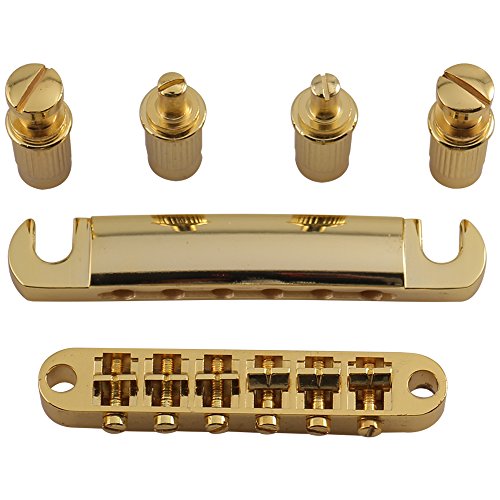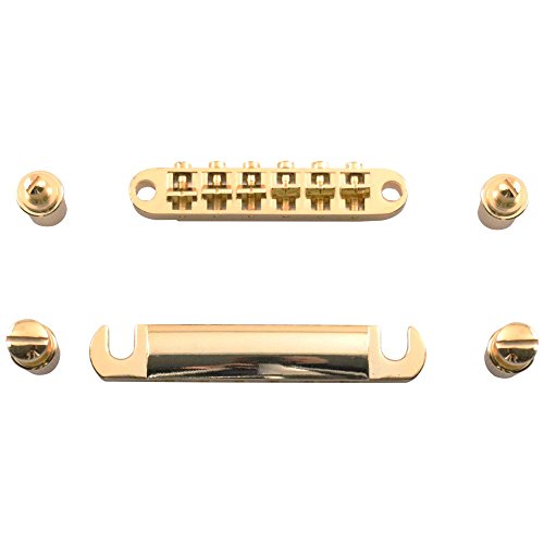 Studio : Seismic Audio Publisher : Seismic Audio Product Description First designed in the 1960s, the Tune-o-matic Bridge and Tailpiece still grace many famous high-end guitars. The Seismic Audio Gold Tune-o-matic Bridge and Tailpiece lets you put this functional piece of history on your own favorite guitar. This standard size will fit most guitars. That includes Fender, Gibson, Ibanez, Epiphone, Squier, ESP, Paul Reed Smith, Jackson, Yamaha, BC Rich, Schecter, Ernie Ball, and many more. The Seismic Audio Tune-o-matic Bridge and Tailpiece allow individual saddle adjustments, height adjustment, improved intonation, and absolute stability. All that leads to better sustain and tone from any guitar. 0