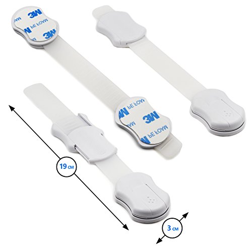 ★ Install the locks without drilling holes or the use of any tools ★ Simply attach the latches to a cupboard using the 3M adhesive tape ★ The durable strap fits a flat surfaces and corners ★ The adhesive is easy to remove and won't leave unsightly screw holes or glue marks ★ You can even reuse the latches with different furniture using the extra tape provided!