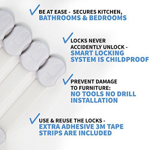 The locks are made of strong materials to fully secure the cabinets. Lock up your personal items without worry - the flexible, adjustable latches provide strong protection for all drawers. You don't have to worry about losing magnetic keys because the latches doesn't require any! Adults can easily unlock the latches with one hand, but kids cannot!