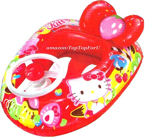 -. Binding : Toy -. Brand : Sanrio -. Color : Red -. EAN : 4891479109846 -. Feature : High quality. Colorful / The steering wheel comes with a horn. Give fun and safe to the child / Inflated to: outer 19.5" x 22" / 49.5 x 56 cm. Seat 8.28" x 8.68" / 21 x 22 cm. Leg hole: 6.7" / 17 cm / Load-bearing: 15 KG / Brand New, original packing with polybag.licensed product, 100% authentic (TopTopForU) -. IsAdultProduct : 0 -. Label : Sanrio -. Manufacturer : Sanrio -. ProductGroup : Toy -. ProductTypeName : TOYS_AND_GAMES -. Publisher : Sanrio -. Studio : Sanrio -. Title : Authentic Sanrio Hello Kitty Transparent Red Baby Swimming Float Seat With HORN Steering Wheel PRETTY