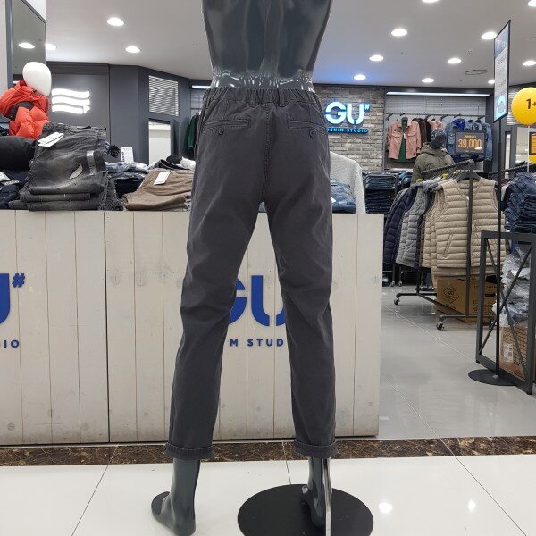 GU# 겟유즈드 (남성) [기모] 면 워싱 치노팬츠 FULWCPI110-GYA 면소재팬츠에 워싱감을 주어 빈티지한 느낌을 살린, 반밴딩헝태로 허리와 배가 편안함 . 골반과 허벅지 핏이 여유로움 . 마네킨32착장.