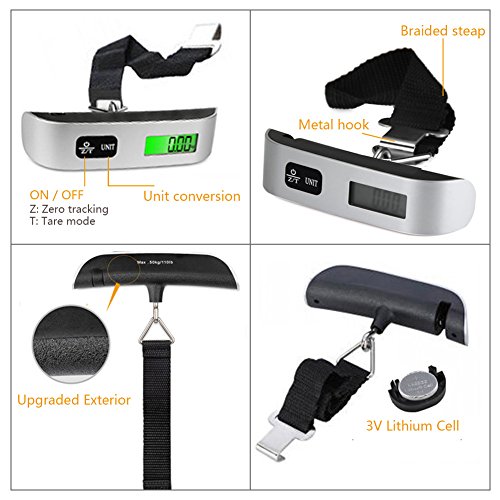 Product Description Feature: The top of the ANGTUO baggage scale has an LCD digital display, so you do not have to bend over and you do not need to lift your luggage to see the weight. Even at night. Using automatic power off mode, and if the low battery indicator will remind you to be sure your scale is ready when you need it. The peeled feature allows you to easily and accurately read the net weight of your luggage, avoiding the embarrassment of paying extra for shipping at the airport. The luggage weighs scale lightweight, small size, easy to carry. It is a good idea as a gift for your family and friends.