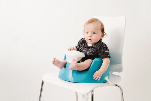 -. Feature : Strapping system allows attachment to a chair / Essential tool for babies learning to sit / Lightweight, durable, easy to clean / Includes upgrade kit, tray placemat and more / Snap - on or twist off pommel