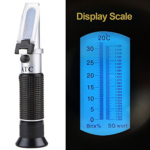 Brix Refractometer with ATC, Dual Scale - Specific Gravity & Brix, Hydrometer in Wine Making and Beer Brewing, Homebrew Kit